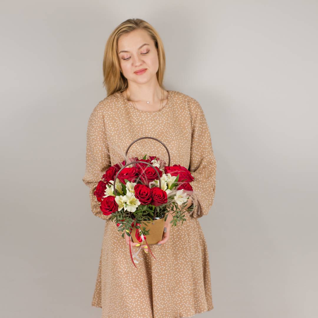 Корзинка "Сказочное лукошко" с розами и ирисами арт. 7053