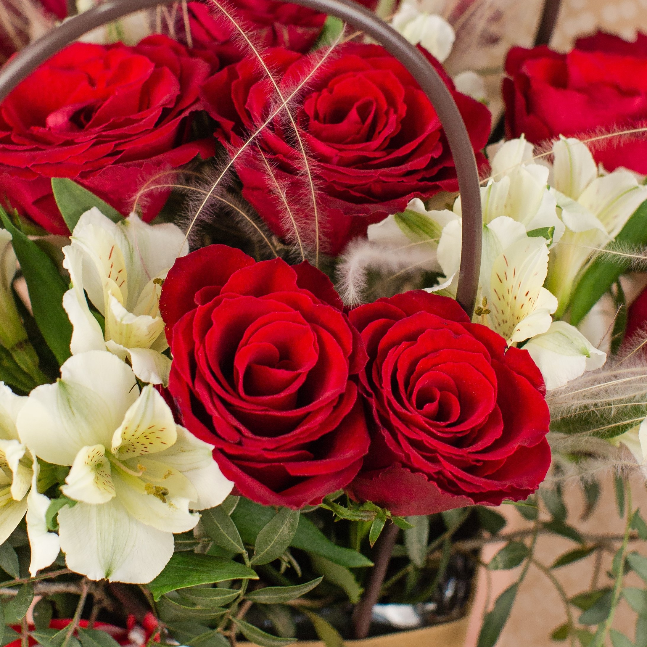 • Корзинка "Сказочное лукошко" с розами и ирисами арт. 7053 Корзинка "Сказочное лукошко" с розами и ирисами арт. 7053