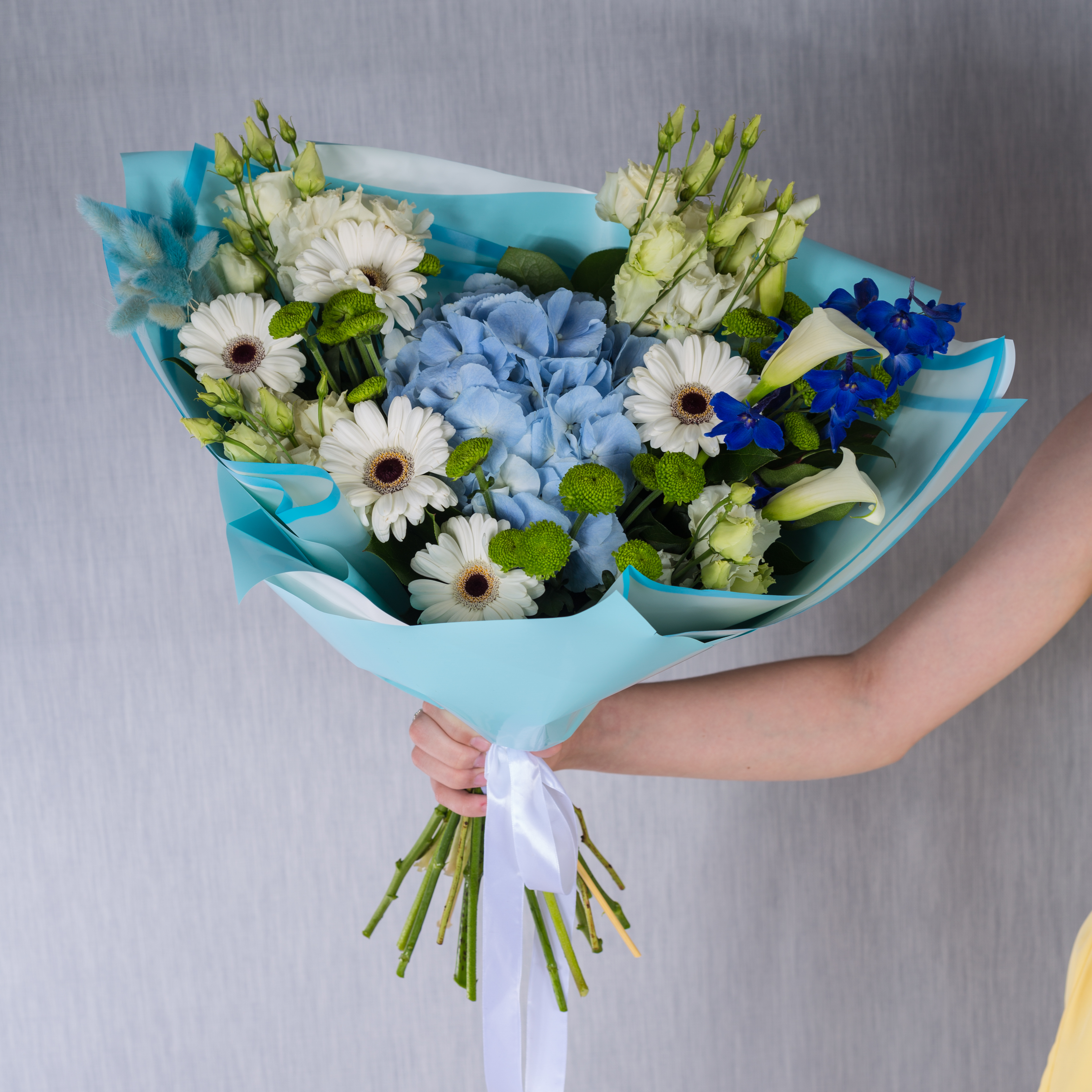 • Букет "Голубая даль" из крупной гортензии и эустомы арт. 7684