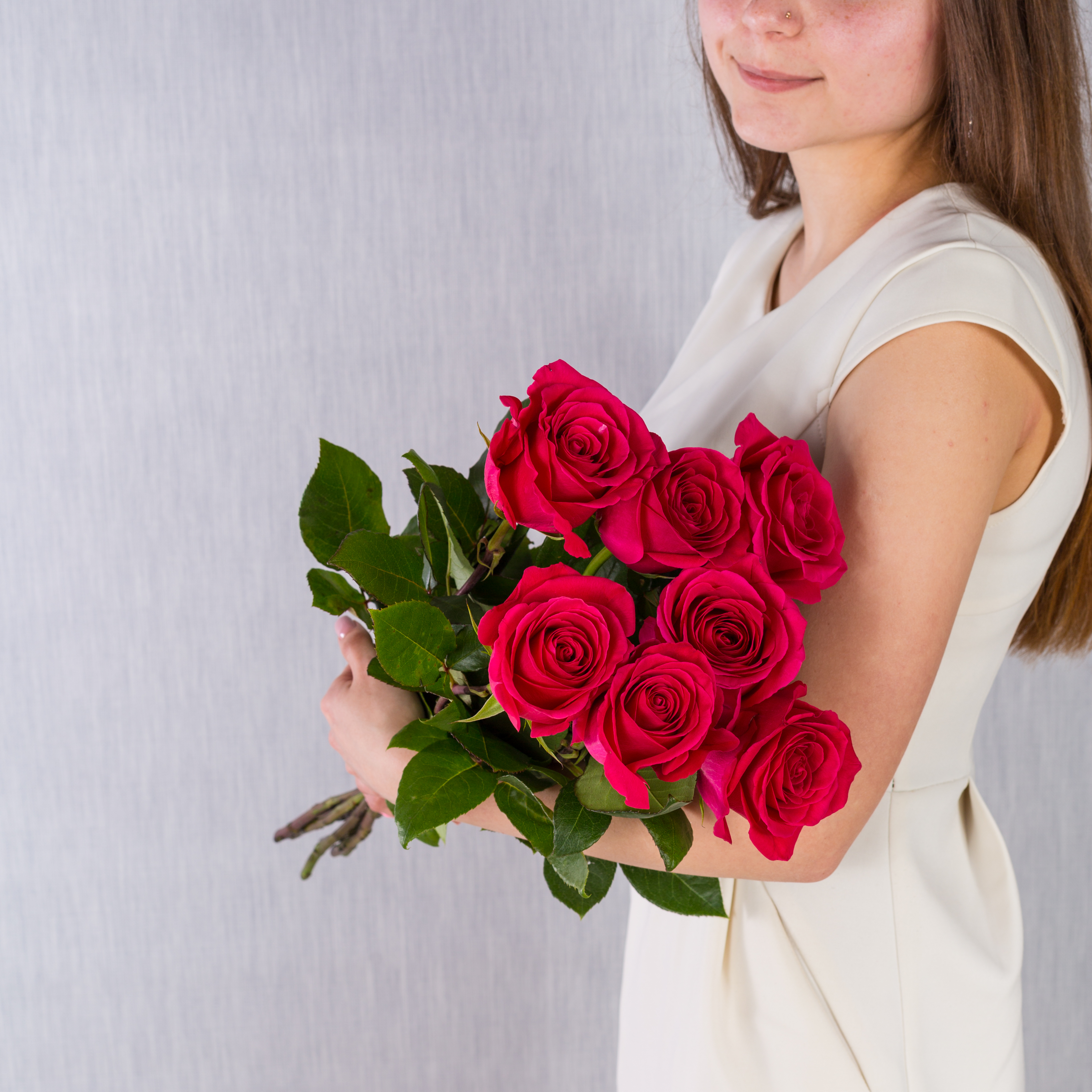Букет из 7 розовых роз с крупным бутоном 60 см. арт. 36400