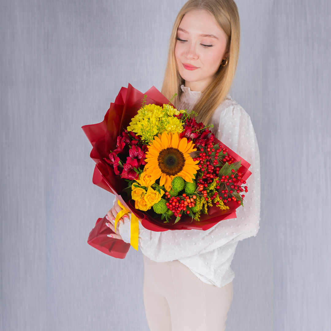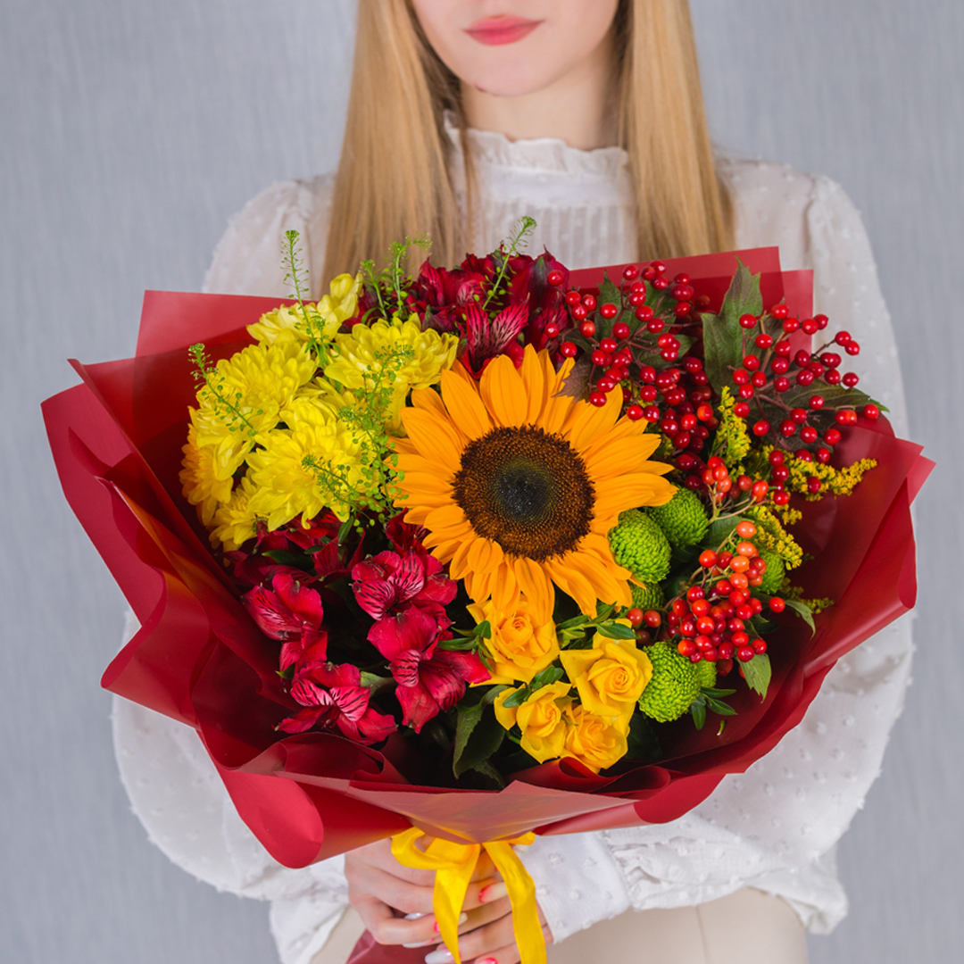 Осенний букет с подсолнухом. арт. 37965