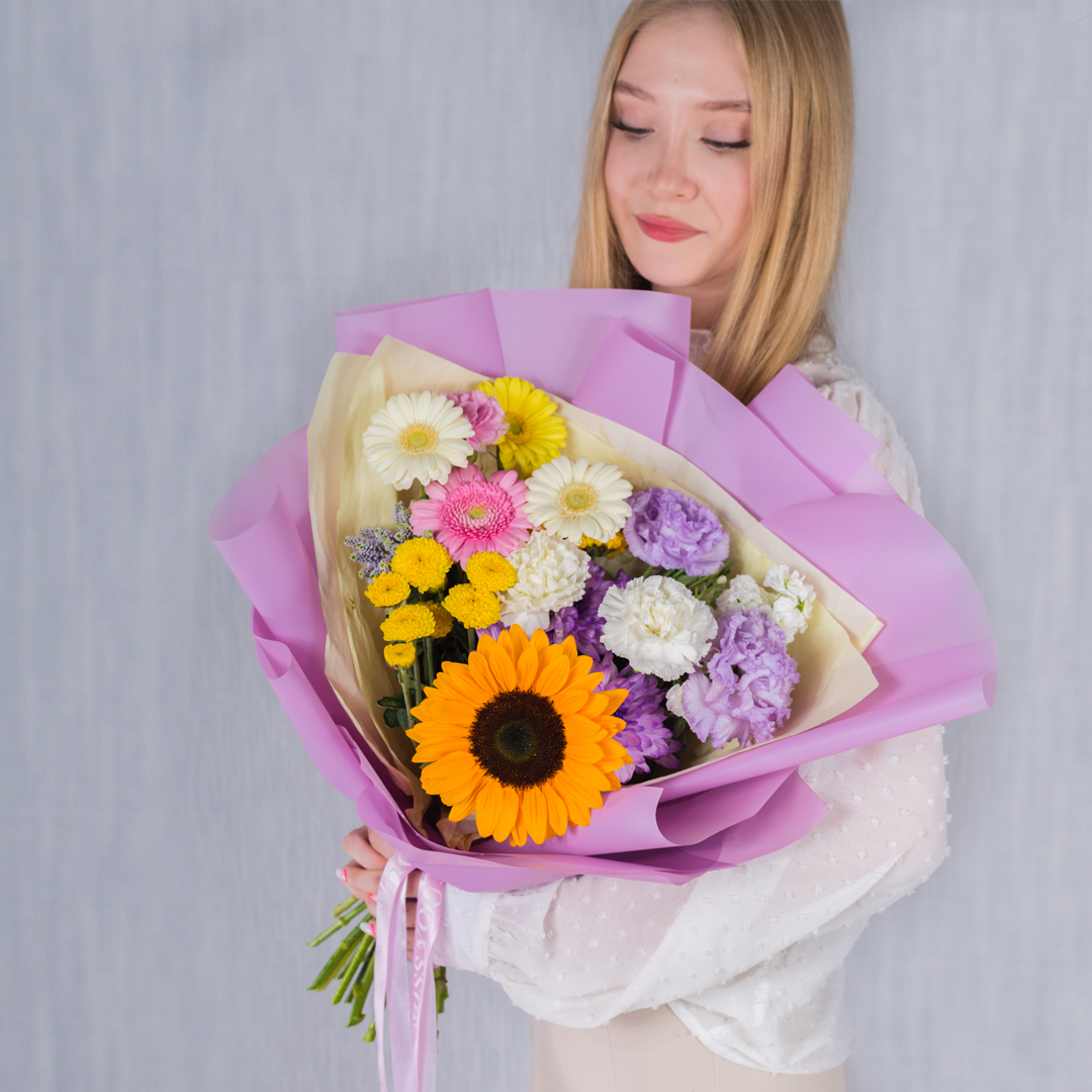 • Букет "Пробуждение" из кустовой розы, эустомы и лилии арт. 7706